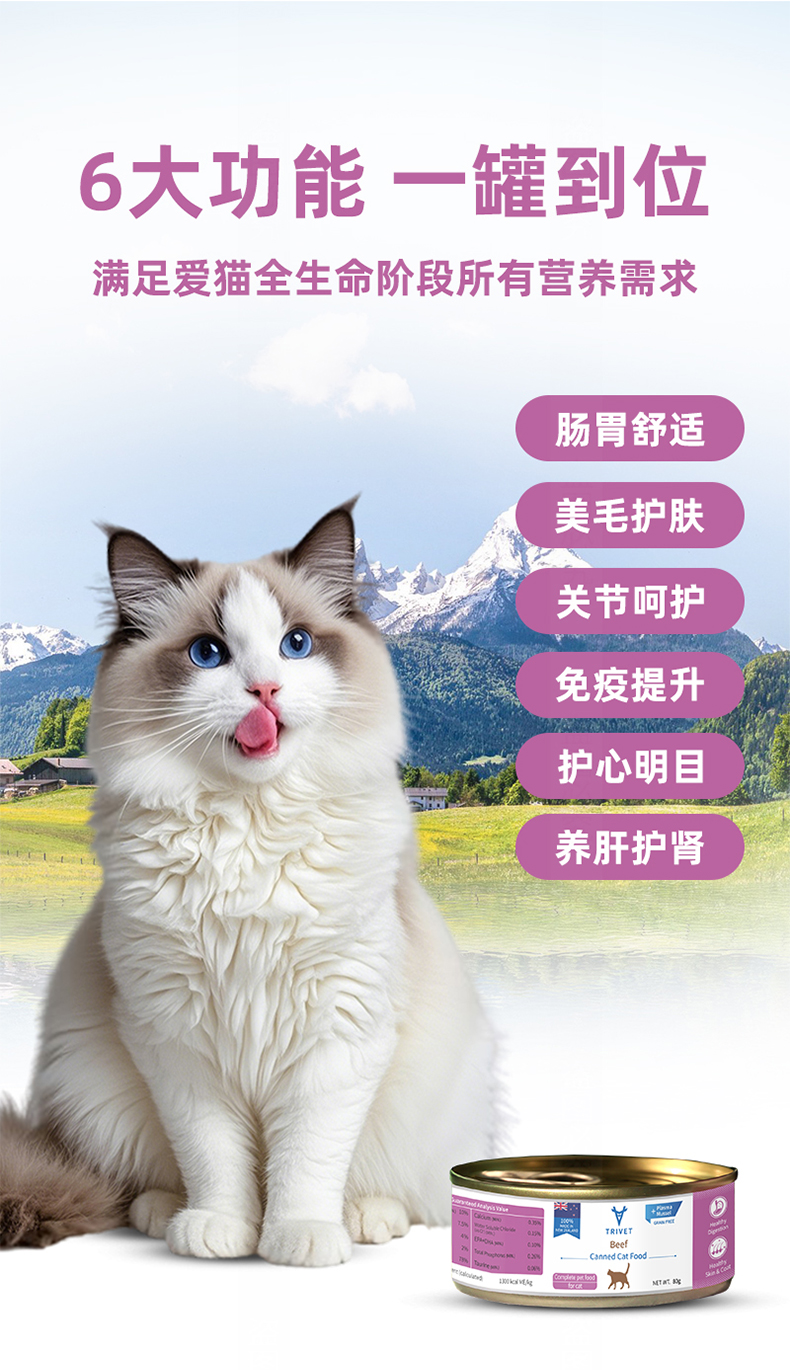 - 符合美国AAFCO宠物食品营养全阶段营养标准。
