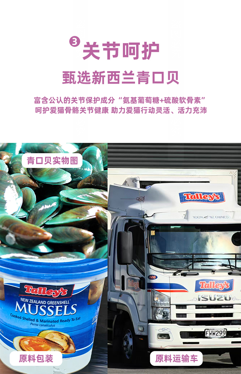 - 科学配比血浆蛋白粉与新西兰青口贝;无谷低敏配方