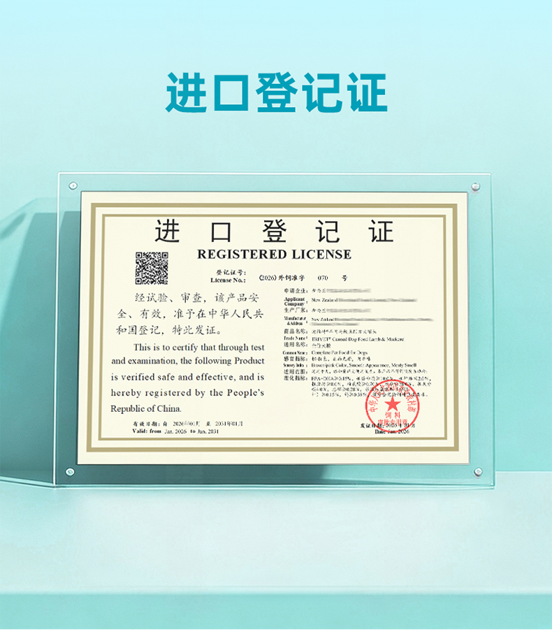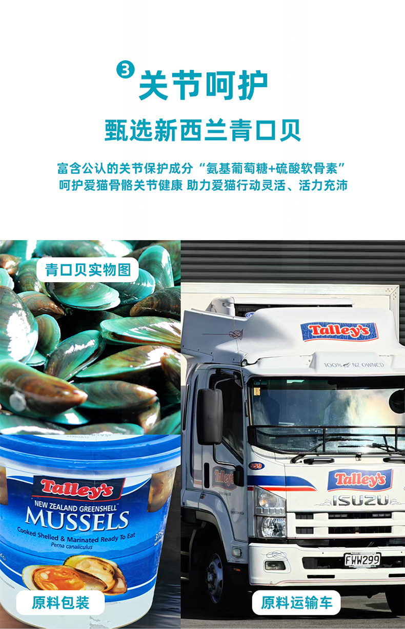 • 科学配比血浆蛋白粉与新西兰青口贝;无谷低敏配方