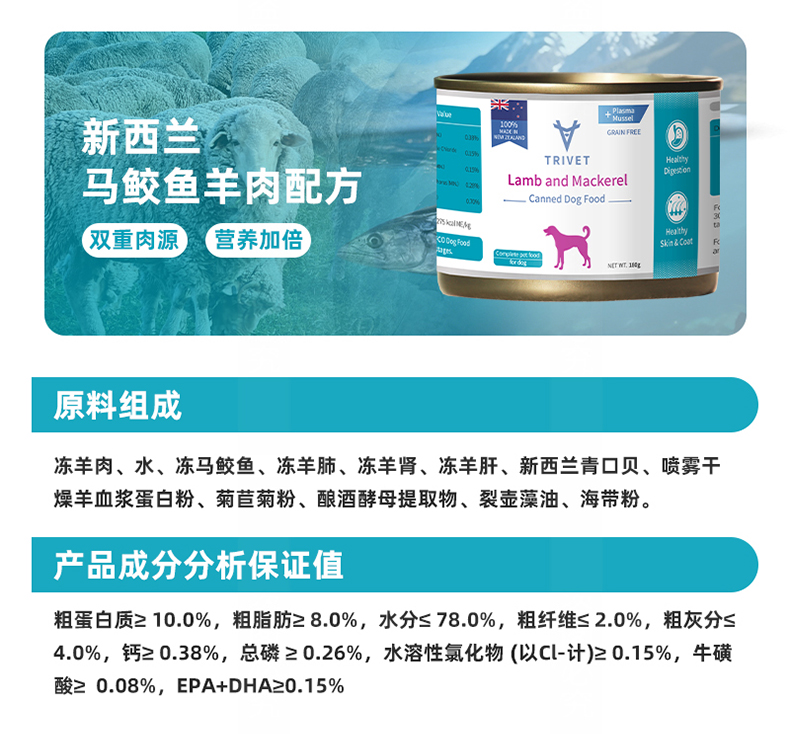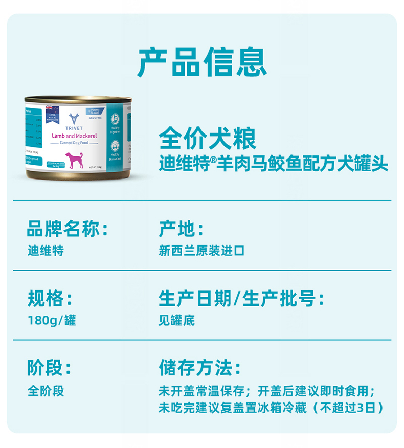 首页    犬Trivet    全价犬粮-迪维特®羊肉马鲛鱼配方犬罐头